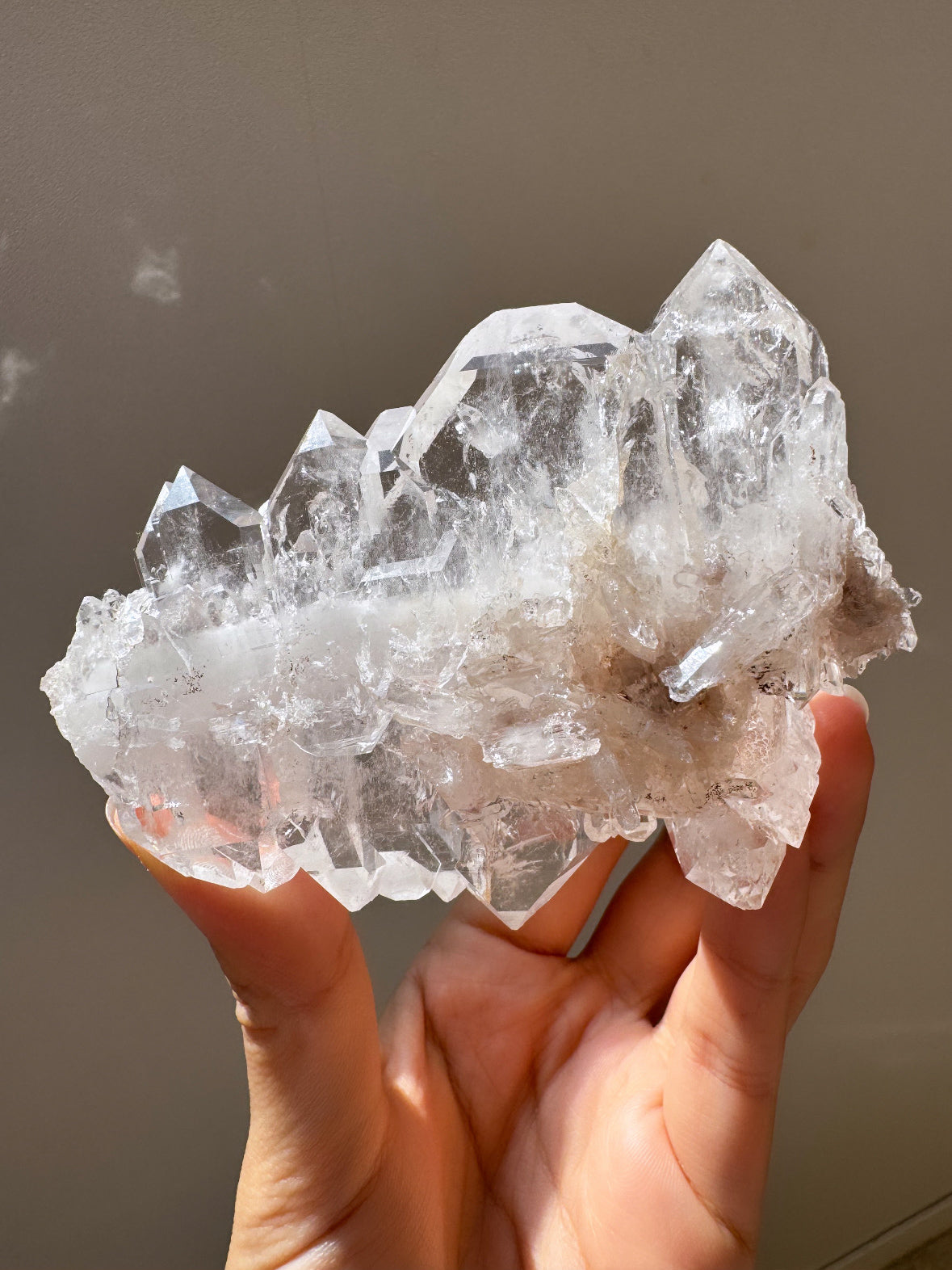 コロンビア、エルペニョンから高品質のファデンクォーツ原石。高透明度と照りのビッグサイズファデンは見事に重なり、メインのクラスターに、また大きなクラスターが付いている贅沢ファデン!ベイビーピンク色も可愛く、このクオリティ、サイズ、そしてノーダメージの子は珍しいです。