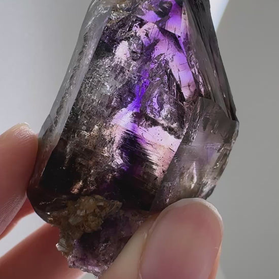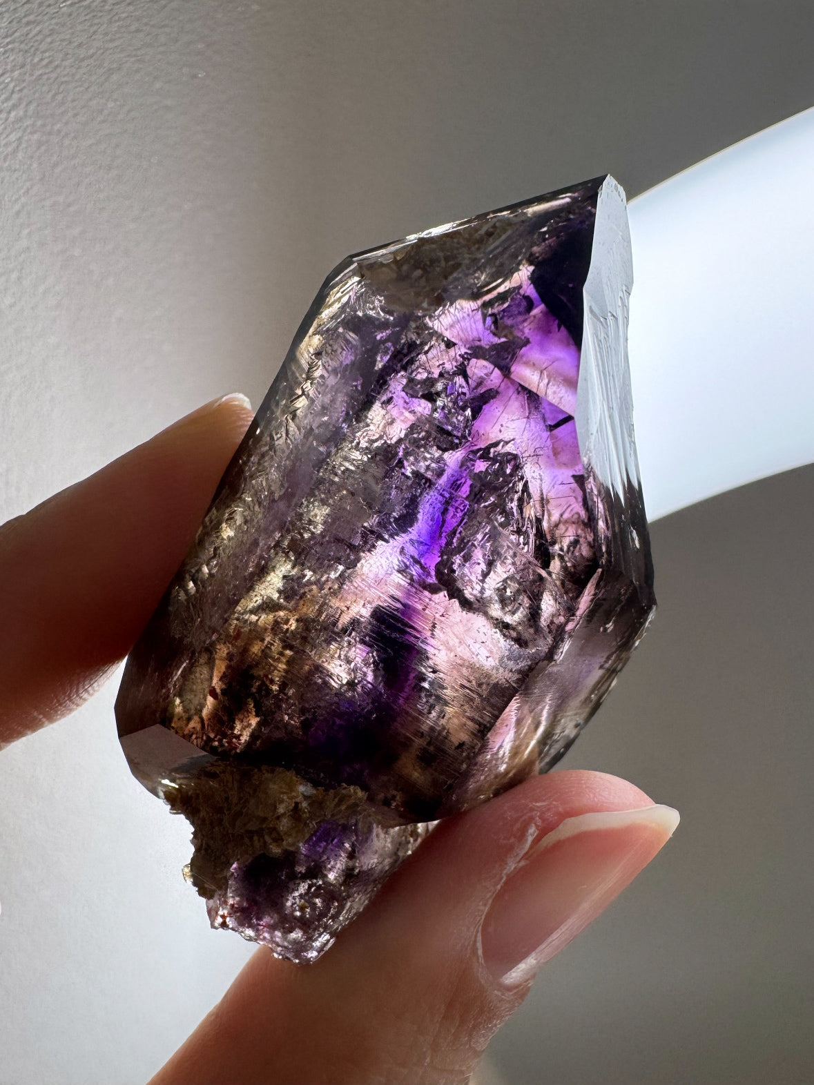 ナミビア、Gobobosebから高品質のブランドバーグアメジスト原石。透明度と照りがとても高いクリスタルの中に濃厚なパープルアメジストが楽しめるゴージャスなクリスタル。Gobobosebからでも滅多に見ない濃厚な色合い、ジンバブエのシャンガーンアメジストを思い起こさせます。