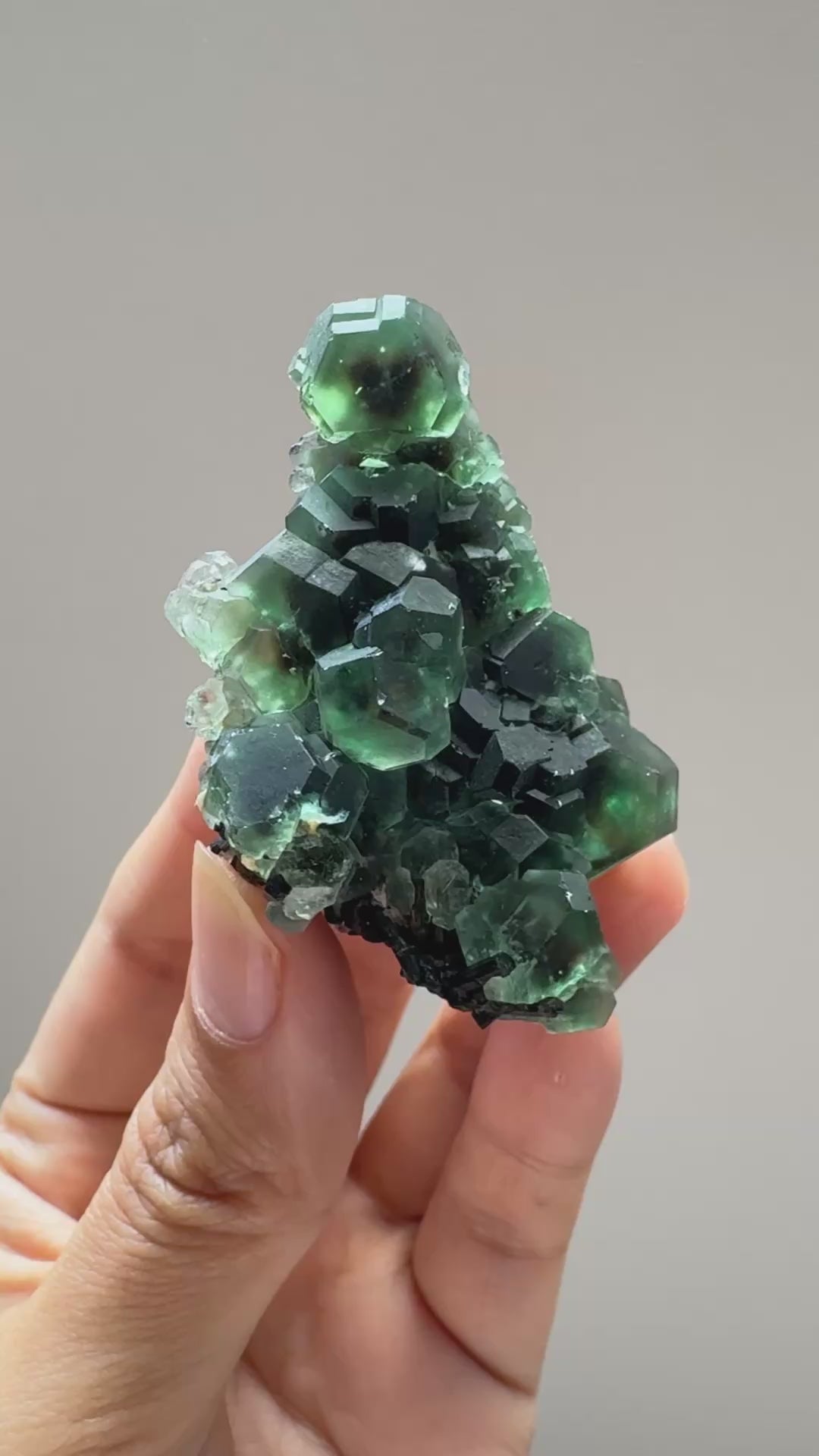 ナミビア、エロンゴから高品質のフローライト原石。高透明度のフットボール型のグリーンフローライトの中に紫やオレンジのファントムが楽しめ、裏面にはブラックトルマリンも楽しめます。