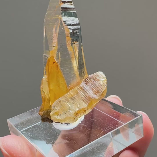 ネパール、ガネーシュヒマール、ラパから高品質のゴールデンヒーラークォーツ。通常ゴールデンヒーラーはシェルテゥン産になり、ラパ産はクローライト入りの水晶で知られています。最近は、ラパからもゴールデンヒーラーが見つかり、採掘されていますが、産出量がとても少ないです。