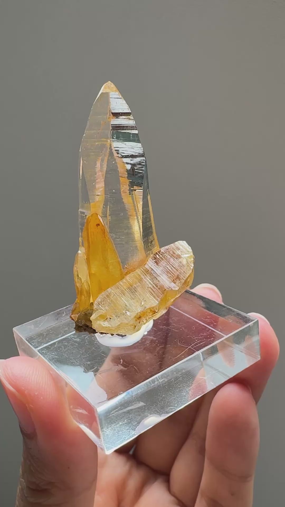 希少な発見からハンドセレクトすることができました。流水のような透明度と照りの水晶。見事なテッシンハビットのフォルム。